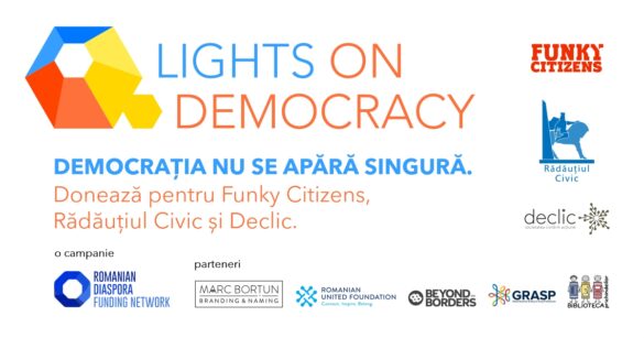 Romanian Diaspora Funding Network (RDFN) a lansat campania de strângere de fonduri – Lights on Democracy – Democrația nu se apără singură – pentru a susține trei organizații din România care vor monitoriza viitoarele alegeri prezidențiale. Funky Citizens, Rădăuțiul Civic și Declic vor cere transparență și respectarea principiilor democratice și vor informa și trage un semnal de alarmă când actorii...