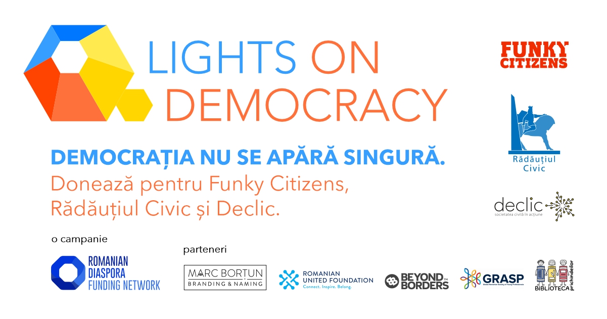 Romanian Diaspora Funding Network (RDFN) a lansat campania de strângere de fonduri – Lights on Democracy – Democrația nu se apără singură – pentru a susține trei organizații din România care vor monitoriza viitoarele alegeri prezidențiale.